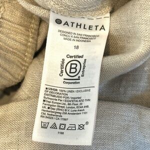 Athleta Voyager 100% Linen Tapered Ankle Pants in Natural Beige Women’s 18 $109