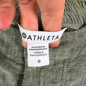 Athleta Voyager Linen Pant Size 0 Aspen Olive Green Minimal Beach Coastal