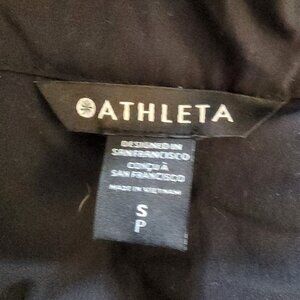Athleta W S Sojourn Pleated Pullover Black 1/4 Mock zip Neck W/ Zip Pocket A267