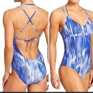 Athleta Wailea One Piece Swimsuit Strappy tie Back blue