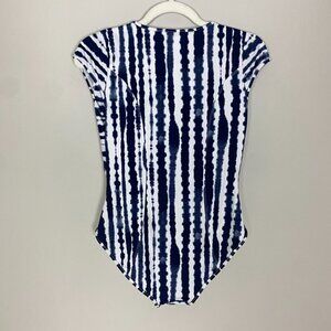 Athleta Wave Break One Piece Swimsuit Tie Dye Womens Medium Blue Cutout Knot