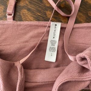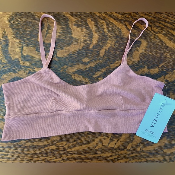 Super soft, cozy feel bra/bra top/sleep bra/layering piece. It’s solid, not see-through! Versatile, comfortable piece. All pics except the first show the truest color - a light, dusty mauve color (a classic Athleta color).