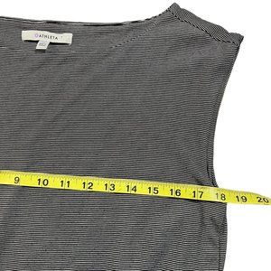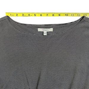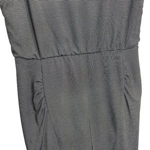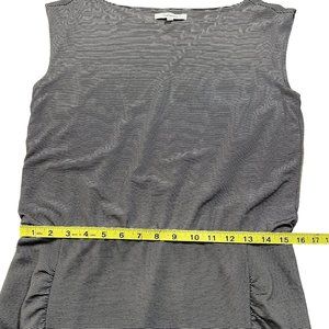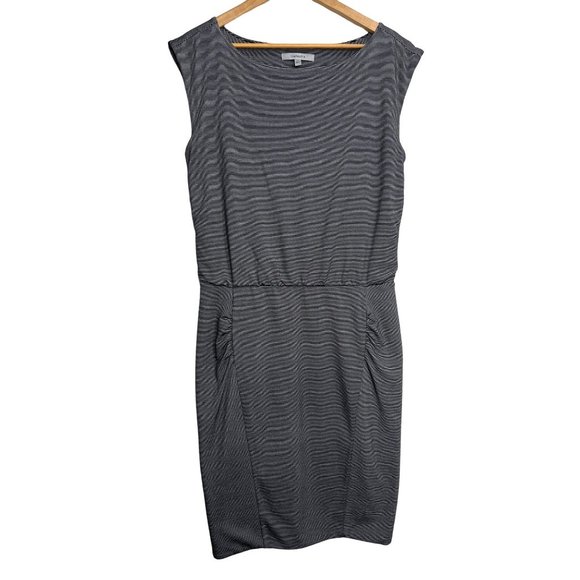 Athleta Westwood Dress Womens Size M Micro Striped Gray Black Ruched Blouson