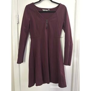 Athleta Whereupon Dress Burgundy Long Sleeve Knee Length XS Petite