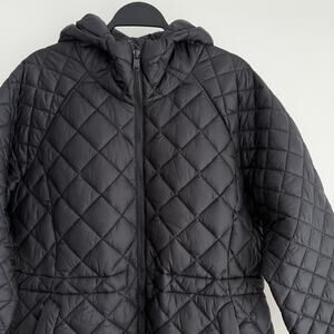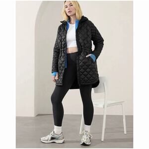 Athleta Whisper Featherless Parka Jacket Women Large Black Hooded Puffer Quilted