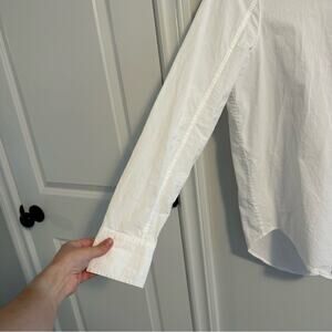 I love this super pretty Athleta white cotton collared button front long sleeve blouse/top