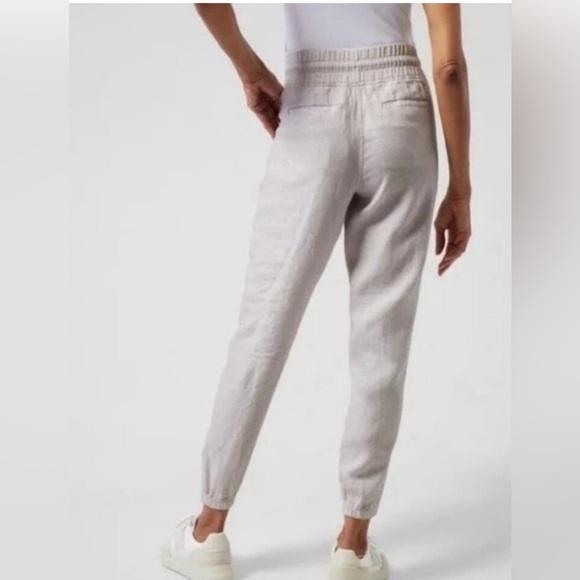 Athleta White Cabo Linen Cheetah Print Zip Pockets Joggers Pants Size 2 petite