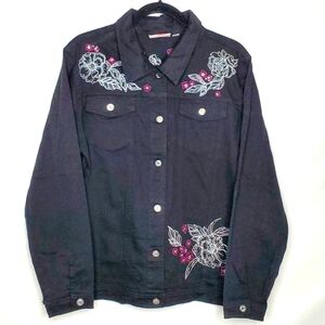 Athleta Double Time Denim Jacket Size XL Snap Front Stretch Trucker Western.