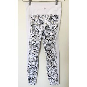 Athleta White Floral Affirmation Leggings Thick Waistband Colorblock Stretch XS