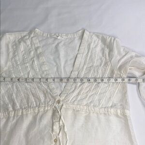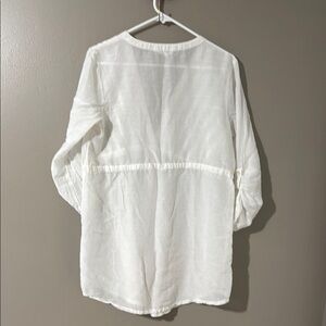 This elegant white blouse from Athleta features a pleated design and a button-down front, offering a sophisticated yet relaxed fit. The lightweight fabric and versatile sleeve length make it perfect for warm weather, while the subtle texture adds a touch of refinement.