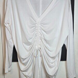 Athleta White Ruched Front Long Sleeve V-Neck Top – Size Large