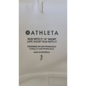 Athleta White Run With It 14" Athletic Skort. Size small. Conquer your run in the breezy comfort of the Athleta White Run With It 14" Athletic Skort. This skort is crafted from Featherweight Stretch fabric made with recycled polyester, offering a silky smooth, lightweight feel that moves and breathes with you. A high-rise, SuperSonic waistband provides a flattering and comfortable fit, while built-in shorts prevent chafing and offer extra coverage. Move freely thanks to the split sides, and enjoy convenient storage with a secure back zip pocket. Perfect for long runs, short runs, or hitting the trails, the Athleta White Run With It 14" Athletic Skort will keep you cool, comfortable, and confident throughout your workout. Shop Athleta today!
