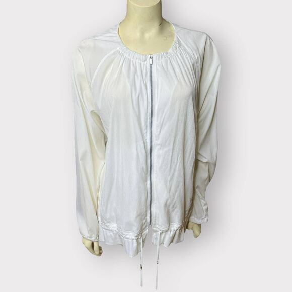 White Windbreaker Jacket by Athleta! This jacket is in excellent pre-owned condition with minimal wear.