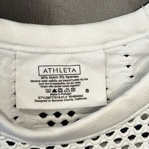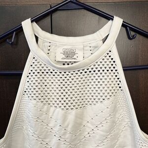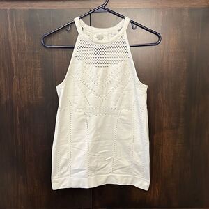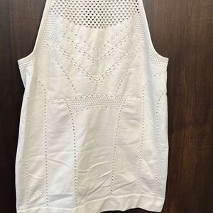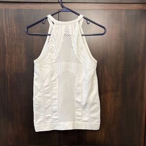 This top is made by Athleta. It’s a white laser cut seamless tank top. Size small and in very nice pre owned condition. Smoke and pet free home.