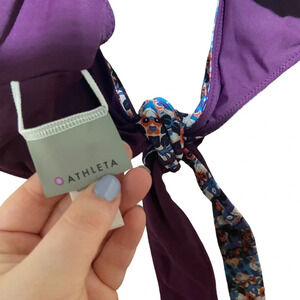 This Athleta Wild Bloom Marrakesh Twister bikini top in size medium is perfect for both style and support. Featuring a vibrant floral pattern and a unique twist front design, it offers a flattering fit for beach days or poolside lounging. The high-quality fabric ensures comfort and durability.