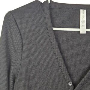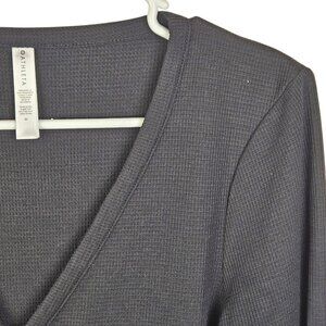 Athleta Wind Down Black Henley Style Long Sleeve Top Waffle Knit Size Medium