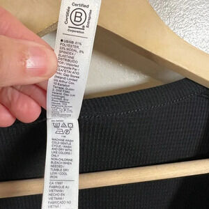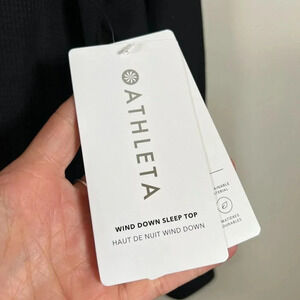 Athleta Wind Down Sleep Top Size Large Black Waffle Knit Henley Lounge Comfy