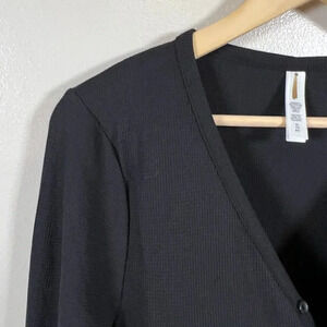 Athleta Wind Down Sleep Top Size XL Black Waffle Knit Henley Lounge Comfy