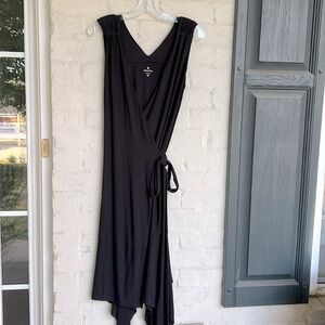 Athleta Windward Black Jersey Knit Sleeveless Fit and Flare Wrap Dress XS
