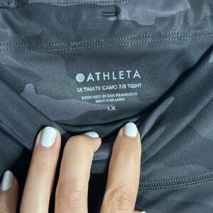Athleta Women Athletic Camo Black Capri Leggings size 1X. Slightly used. Excellent condition. Smoke free home. No issues. Athletic leggings.