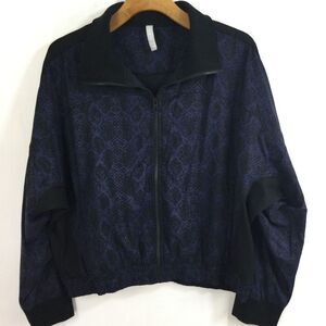 Athleta Women Brooklyn Bomber Track Python Print Full Zip Jacket Blue Sz XLarge