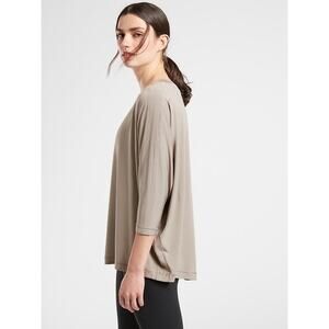 Pre-owned women’s Athleta Relaxed Weekender stretch athletic top featuring 3/4 length batwing sleeves. Made from a soft, sleek, and smooth modal blend.