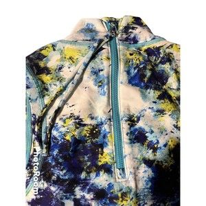 Athleta Women Size XXS Blue Green White Abstract Print Swim Tank New without Tags 1/4 Back zip with pulls