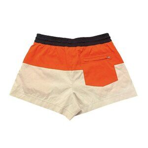 The Athleta Women's 10 Oahu Shorts are versatile activewear shorts featuring a colorblock design in navy, orange, and khaki. These pull-on shorts have drawstring pockets for added convenience. The shorts are designed for travel, casual outings, and various athletic activities like gym training, walking, and running. Made of lightweight polyester material, these regular fit shorts also have an elastic waist for comfort. With a back zippered pocket, these shorts offer style and functionality for active women on the go.