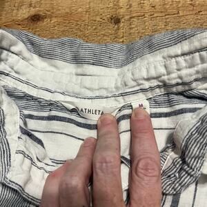 Athleta Women's 100% Linen Navy White Striped Beachy Peninsula Tunic Top Sz M