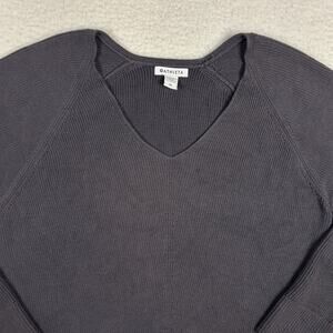Athleta Womens 2X Hanover Refined V-Neck Sweater Pullover Stretch Rib Knit Purple
