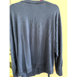 31" pit to pit, 19" long pit to hem, 26" long sleeve. Rimmed hemline. True navy see last photo.