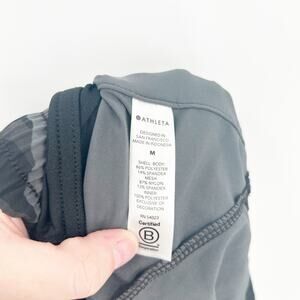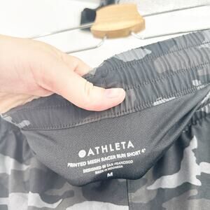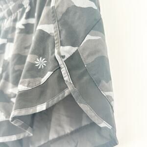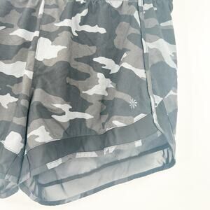 Athleta Womens Active Workout Camo Printed Mesh Racer Run Shorts 4" in Gray and Black. Size Medium.