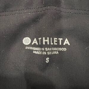 All orders ship within 1-3 business days. These women's ankle length leggings are made by Athleta. Color is black. They have pockets on the sides (one open, one zippered). Size is small. Excellent condition. Make me an offer!D567
