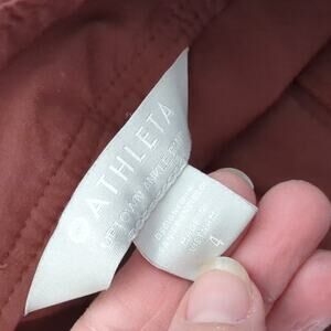 athleta uptown ankle pants size 4. burnt orange brown style number 530632 super cute style with cargo pockets, zip ankle flare detail inseam 27. high rise waste 12. flat across waistband. 14.5 excellent condition, no flaws