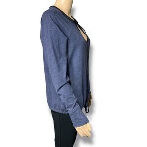Blue Black V-Neck Long Sleeve Athletic Shirt Top Drawstring Hem Athleta