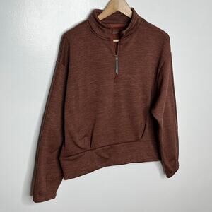 Athleta Womens Attitude Polortech Half Zip Pullover Sweatshirt Large Brown