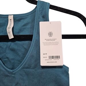 Athleta Women’s Aurora Seamless V-Neck Tank Top Turquoise Ribbed Size X-small