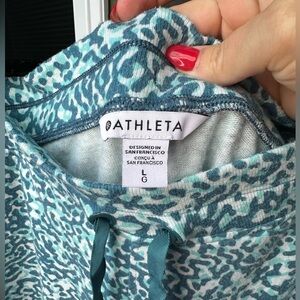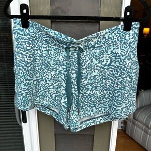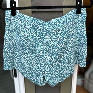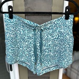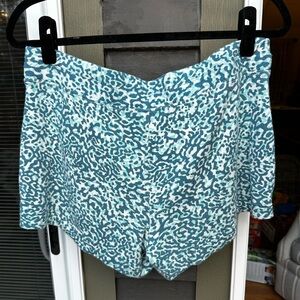 Athleta Women’s Balance 4” Clouded Leopard Teal Blue Shorts Size Large