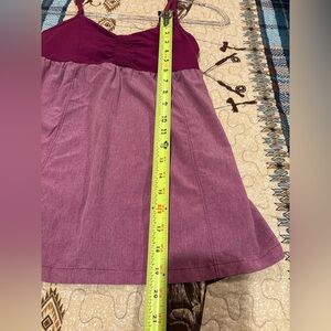 Athleta Women's Bestie Tank Top with a built-in shelf bra and an empire waist design. This Athleta tank top has an Empire waist tank top with adjustable spaghetti straps and a built-in shelf bra. Ruching at the bust area. Semi-fitted silhouette. Designed for activewear and casual wear. Made from a comfortable and stretchy blend of materials, potentially including nylon, polyester, and Lycra or spandex. Good condition. See measurements to insure this will be the correct fit for you. Women’s XXS thanks for looking!