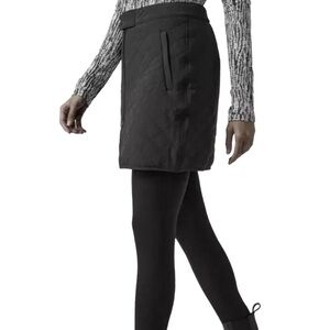 Awesome quilted, black ski skirt by Athleta. Zippers are fully functional and can be adjusted to achieve desired look. Zippered pockets on both sides. Nice thick material.