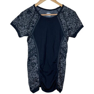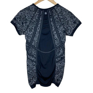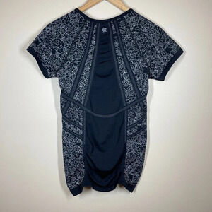 Athleta Womens Black Fastest Track Cap Sleeve T-Shirt Size M Ruched Stretch