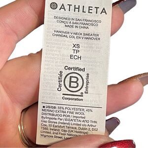 Athleta- Women’s Black Hanover Refined V-Neck Wool Blend Sweater, Size XL