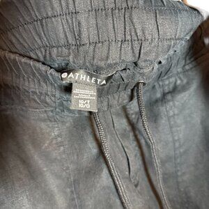 Athleta Womens Black Linen Jogger Pants Size 10/10T With Elastic Waist & Zipper