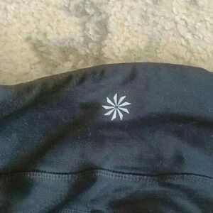 Athleta Women's Black Mid-rise Ruched Leggings S. In good pre-owned condition. Mid-rise. Stretchy. Front hidden waistband pocket. Ruching on the back ankle. Shows some skin. For reference I'm 5'2 and they come mid-calf. No holes or stains. 87% nylon 13% spandex. Comes from a smoke-free and pet-free home
