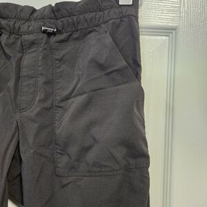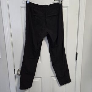 Shell is 95% nylon, 5% spandex. Mesh is 87% nylon, 13% spandex. Adjustable elasticated waist with pinch clamp drawstring. 2 hand pockets and 2 back zip pockets. Mid rise with a 28" inseam. Minimal signs of wear. Black. Size 2. Ships clean and fast!!