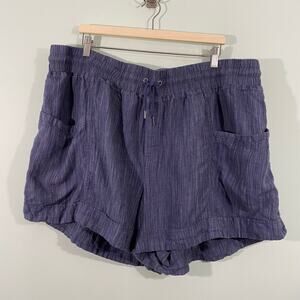 Athleta Women's Blue Cabo 100% Linen Textured 4" Pull On Shorts Size 24
