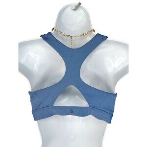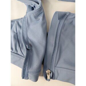 Athleta Womens Blue Front-Zip Sports Bra With Racerback & Mesh Details
