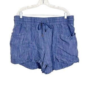 Athleta Womens Cabo 100% Linen Textured 4” Shorts Lightweight Plus Size 18 Blue