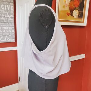 Elevate your activewear game with this Athleta Women's Conscious Crop Bra in a beautiful light lavender color. Designed for plus size women, this bra offers medium support and features a full racerback strap type with a pullover closure. The bra is made of a breathable and stretchy nylon and spandex fabric, with removable pads and a quick-drying feature.