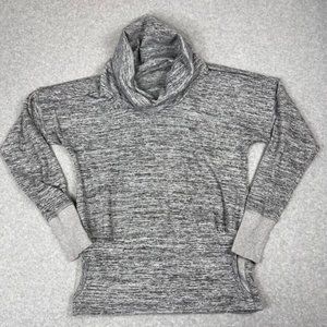 Athleta Womens Cowl Neck Sweatshirt Size Small Heathered Gray Pockets Thumbholes